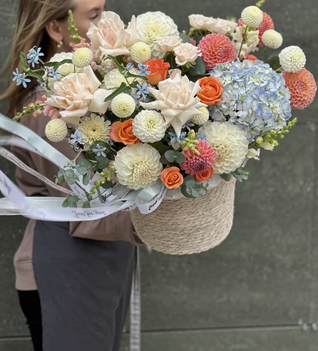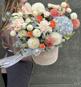 Красочная композиция в плетенном кашпо