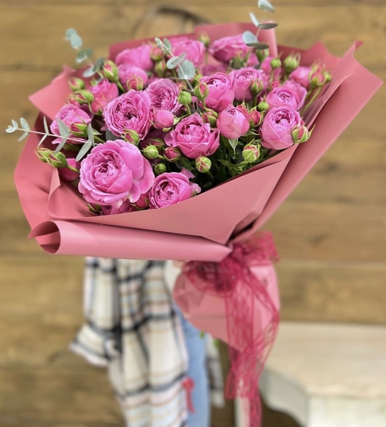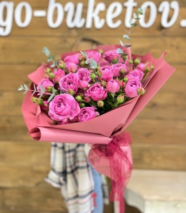 Любимой 505 (Букет из пионовидных кустовых роз с эвкалиптом)